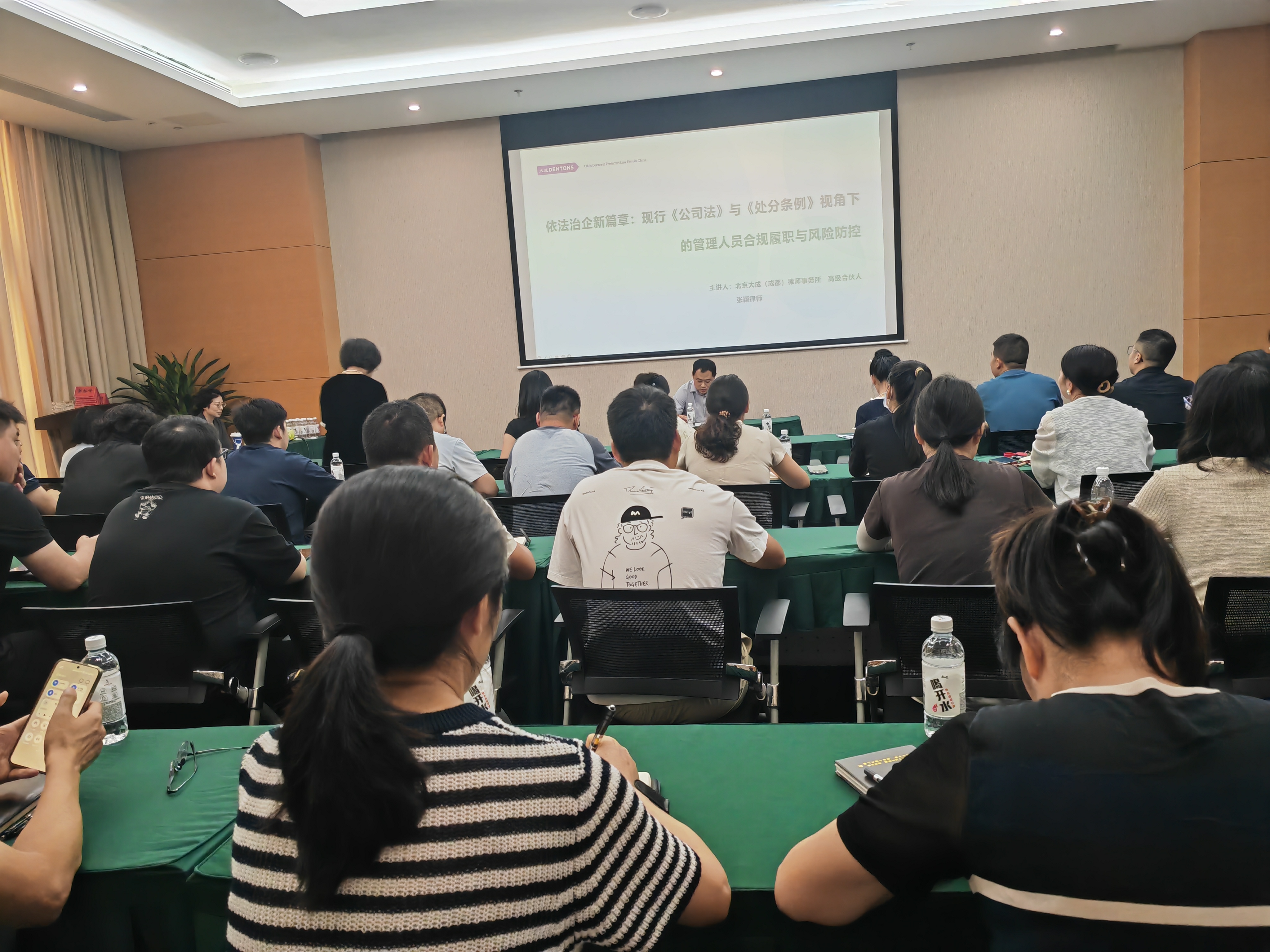 本次培训特邀集团常年法律顾问北京大成律师事务所高级合伙人张颖律师担任主讲。张律师围绕新《公司法》对国有企业治理结构的深远影响、对外股权投资的法律新规、经营违规责任追究机制更新以及企业合规体系建设的现实路径等核心内容,结合典型案例进行了系统剖析与深入讲解。